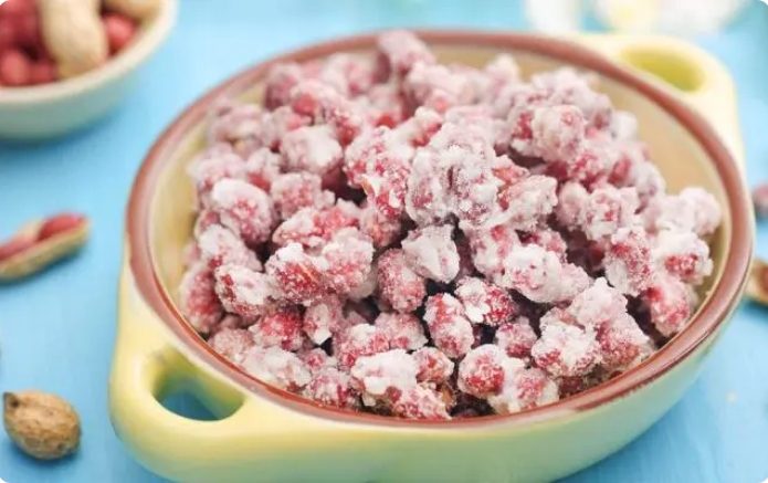 1.作为看电视或外出游玩时的小零食,那么糖霜花生肯定是最佳选择了。首先我们制作糖霜花生时,需要准备的食材有:白砂糖,生粉,花生和少量的水。我们首先将花生倒入锅中翻炒,接着再在锅中加入少量的水,倒入适量的白糖小火熬制,则可再次将炒好的花生下锅翻炒,要出锅时加入适量的生粉即可。
