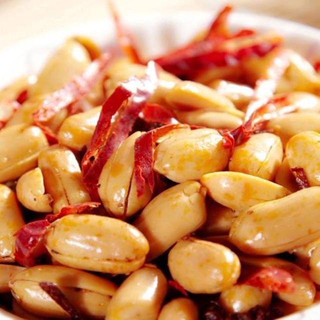 2.而在饭桌上我们经常吃到的酒鬼花生,也是可以轻松在家里制作的。我们首先要将花生剥去外壳,放置油锅中炸五分钟捞出备用。接着我们在油锅中放入干辣椒与花椒一起翻炒,在适当的时候放入准备好的花生,辣椒粉,盐,糖。出锅后的花生米颗颗饱满,每一颗都有着浓郁的口感哦!